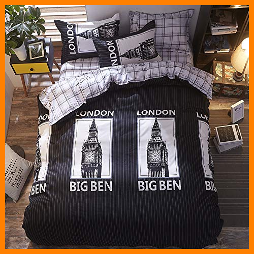 【 Mejor precio en oferta de 】✔️️ Fansu Juego de Ropa de Cama de 4 Piezas Juego de Fundas de Edredón Incluye 1 Funda Nórdica y 1 Sábana encimera 2 Funda de Almohada (Cama 150/160-220x240cm,Londres Negro)