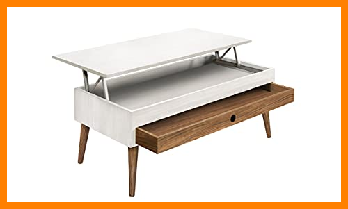 Por fin, una mesa de centro elevable de diseño elegante para combinar con su decoración moderna o clásica. Esta mesa de centro de diseño vintage está construida con una base de madera maciza y una parte superior blanca / fondo de madera natural / chapado para un acabado único. Con 47 cm de ancho, la mesa de centro es el punto focal perfecto para las habitaciones más pequeñas, pero ofrece mucho espacio para servir a los invitados.